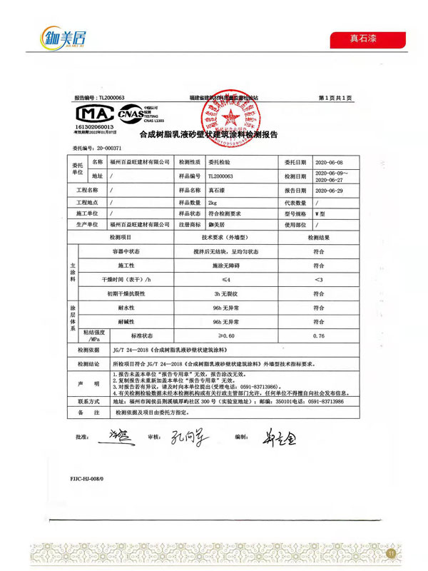 真石漆合格報(bào)告